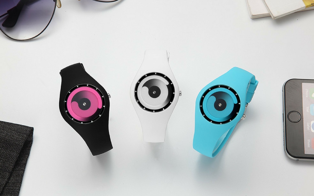Colored Meteor Attack – design karóra, különleges, színes üstökös-mutatókkal, fekete, puha szilikon szíjjal, nőknek és férfiaknak